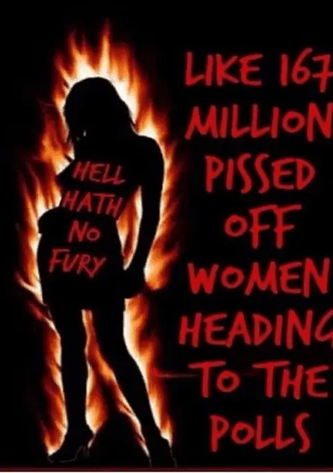 Half those woman already switched parties after seeing their grocery bill double and riots caused their insurance to rise 35% and that was before being a victim of the anarchists parties crime spike. Furthermore out of the remaining Dem voters, the senior citizens aren't worried about the States controlling abortion, because that scenerio has no affect or concern in their lives.