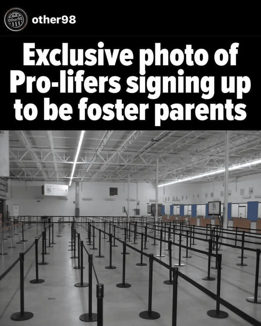 Foster care. At least read the damn meme if you're gonna respond.there is no place to stand in line,,