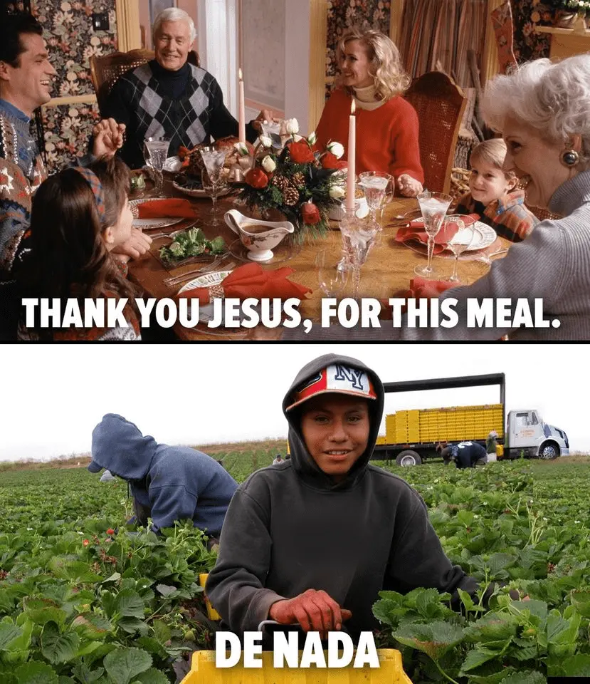Somebody's triggered today.Do you think that black and brown Americans aren't sitting at their Thanksgiving tables reeping the rewards from that pickers labor also you damned racist ?
