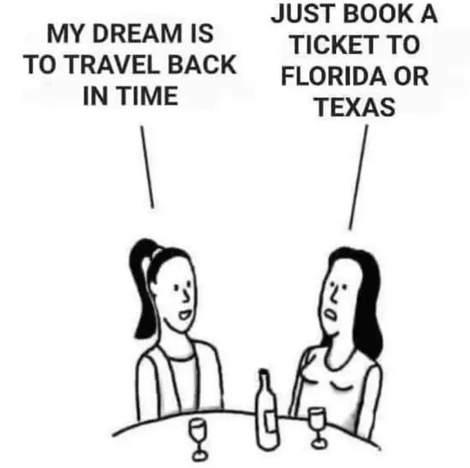 Florida and Texas have gotten back on the time travel listings book, as being "good" destinations, so you can definitely stop in those states now.