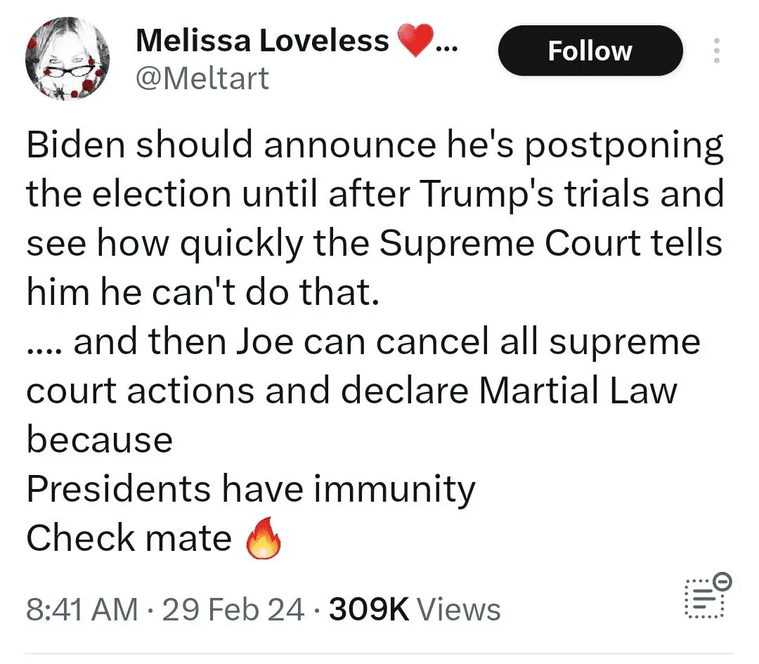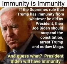 Disagree with your implications here, but if Biden ends up with immunity as a result, then just as long as he leaves office after his 4 year's of chaos, then who cares or rather so be it.