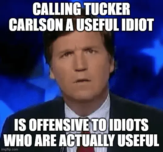 If it's you leftist who are calling someone an idiot, otherwise after getting your cages rattled, then immediately everyone knows that Tucker is doing the real job that the fake journalist at the MSM aren't ever allowed to do.