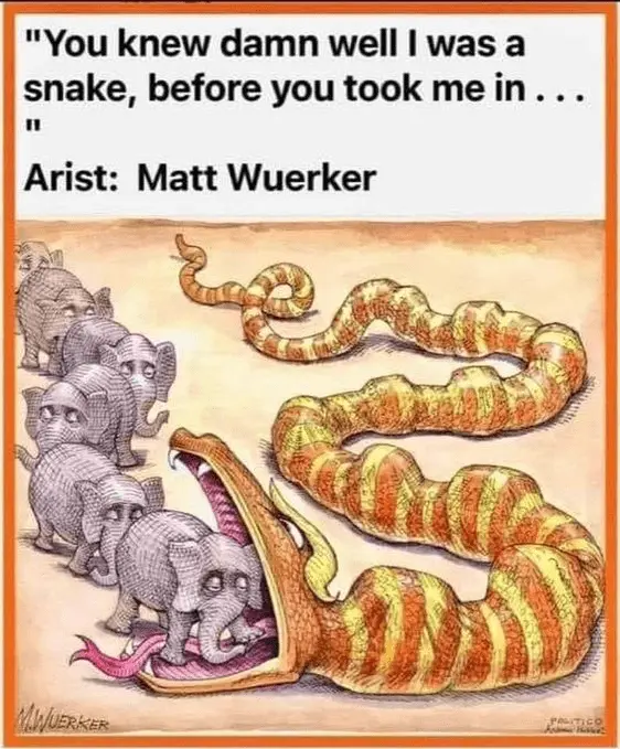 No......she's acting like Trump is a snake.Let me guess - uhhhhh that's Joe Biden requiring his follower's to finally pay up by walking into the trap held open for them ? Ding, ding, ding I win...