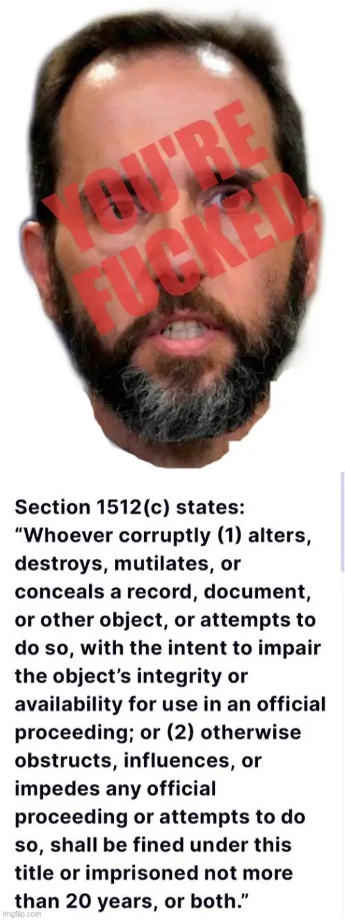 Section 1512(c) says 20 years for tampering with official documents. Lock these filthy mother fuckers up.