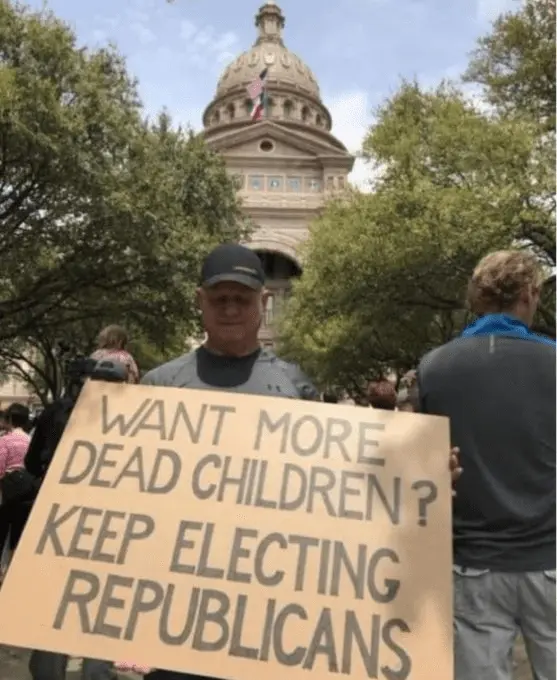 Why do people create false messages on signs for political purposes ? Now replace the republican name on the sign with the name Democrat, and it'll be factually correct.