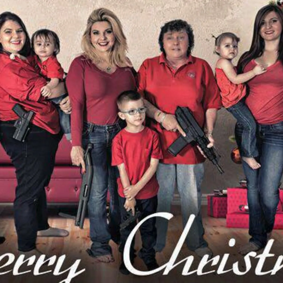 How many Christmas cards have you received with a family grinning while each holding such weaponry?