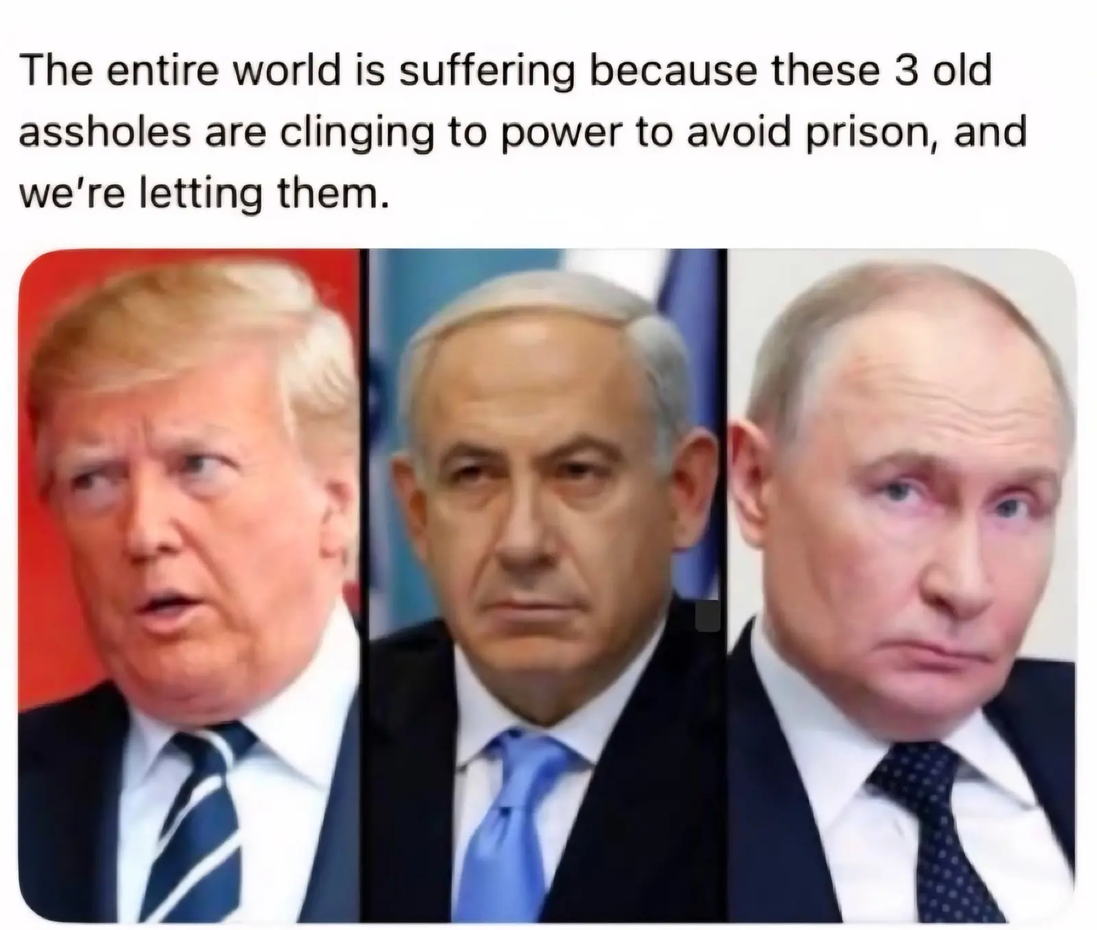 Expressing concern about one thing does not equate to apathy toward all other things.Oddly, no concern about Maduro, Khameini, or Xi.