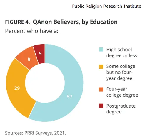 Crackpot paranoia remains rampant, and there are vulnerable folks who are easily indoctrinated. Most are white and did not make it beyond high school.
