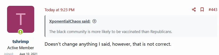 And then you decided to make it about republican vs the black community when all I was doing is adding another group that has been reluctant to take the vaccine.
