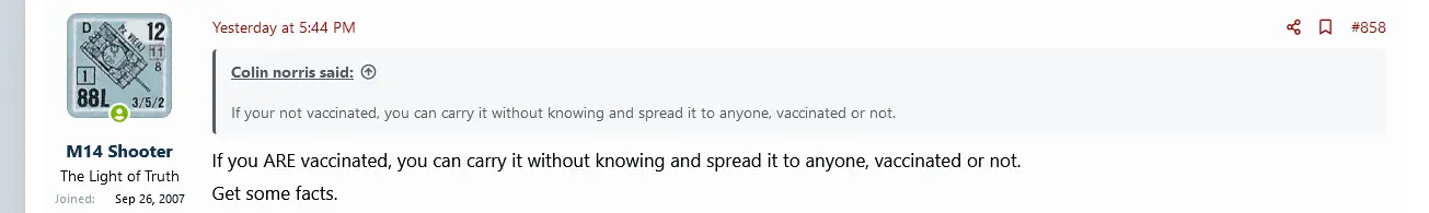 "If your not vaccinated, you can carry it without knowing and spread it to anyone, vaccinated or not. Get some facts."