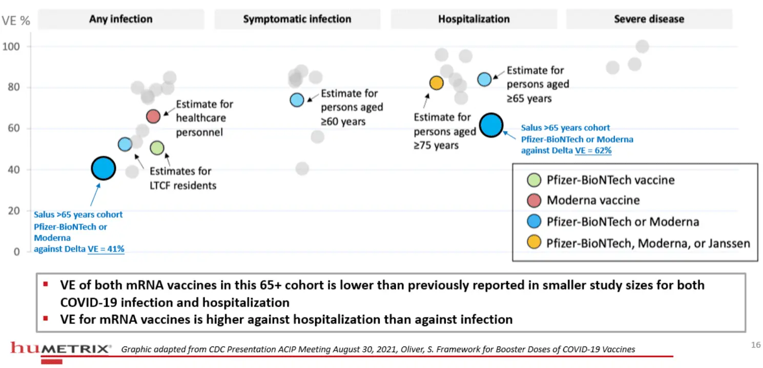 Slide 16: Vaccine effectiveness works out to 41% and 62%, respectively for this cohort.