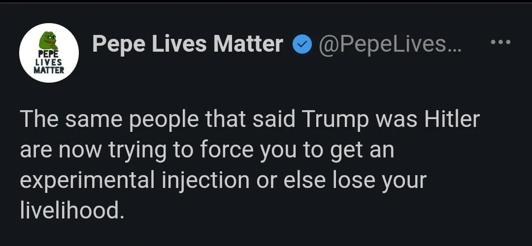^ Thread win.No. My wife and I have made a pact to never allow either of us to get jabbed—whatever that takes. I am retired Army and former federal law enforcement. I run a small, mostly destroyed small business thanks to the fake pandemic and she works for a pharmaceutical company which will surely mandate the vaccine. She will quit her job and I will retire completely. We'll get by even if getting by means living in isolation somewhere deep in the wild. Freedom, my friends, is more than a word or even a state of mind; freedom is a way of life.