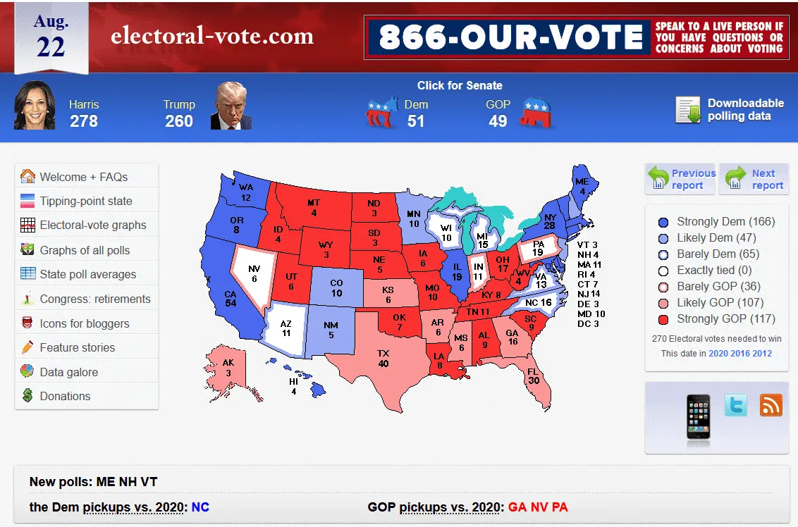 The latest has Harris up in NC but Trump up in Pennsylvania. Interesting.