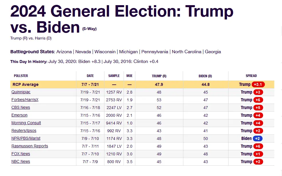 I was watching someone on tv the other day talking about poll reliability. According to him they're becoming more and more unrealistic than a few years ago but at least Real Clear uses an average of polls