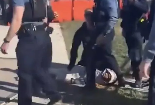 yeah black illegal hispoaic who loves hamasthose are the police..... The perp is the one in red,