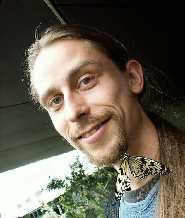 Yes, with long hair and butterfly, a stereotypical biologist.