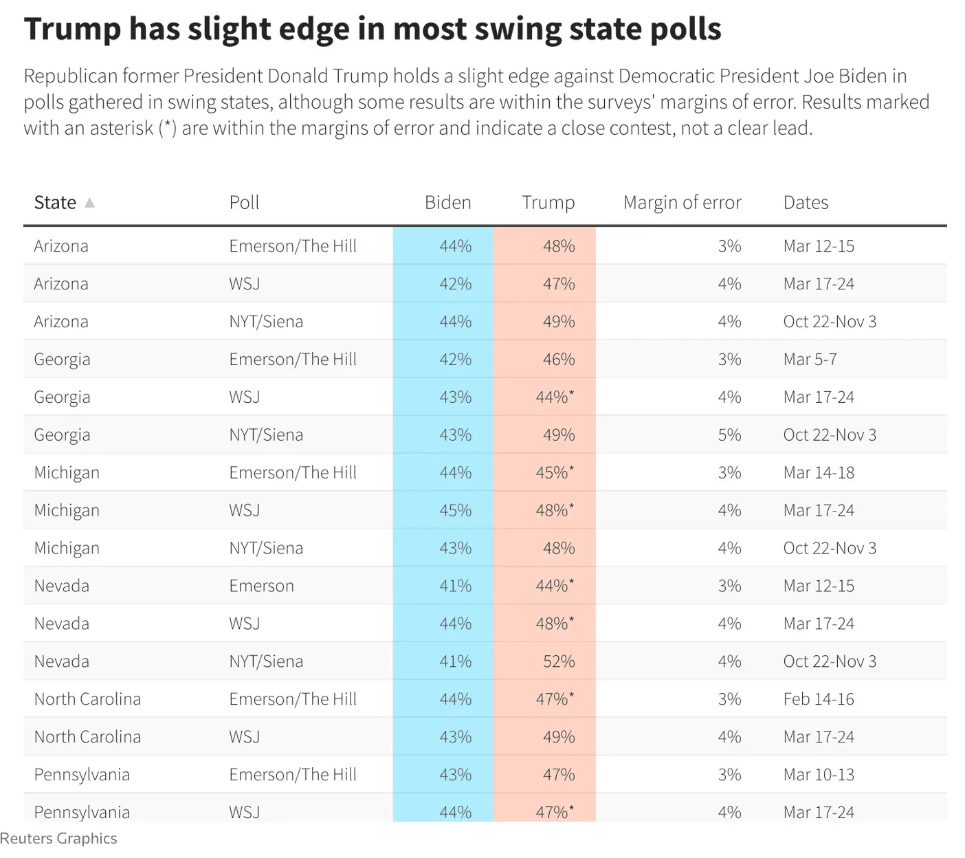 6-months to go, a lot can happen. How will the conventions play out, if Trump is convicted? Will democrats dump Biden?