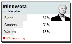 I expect that Warren will be pressurised to withdraw her candidacy now also, she is not even winning her home State of Massachusetts, she has been averaging between 11-22% in polls, now she's more Left than Creepy Joe but not as Left as Bernie, so who is she going to endorse Creepy Joe or Bernie? If she endorses Creepy Joe then he is going to be the Democrat Nominee if she endorses Bernie then it does not matter because like in 2016 they are going to stop Bernie even if they have to do the Super Delegate thing again like they did with Hillary.