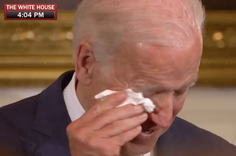 Washington - President Biden today was seen crying at a press conference saying governor Abbot is refusing to abide by a recent SCOTUS ruling to reopen the border.
