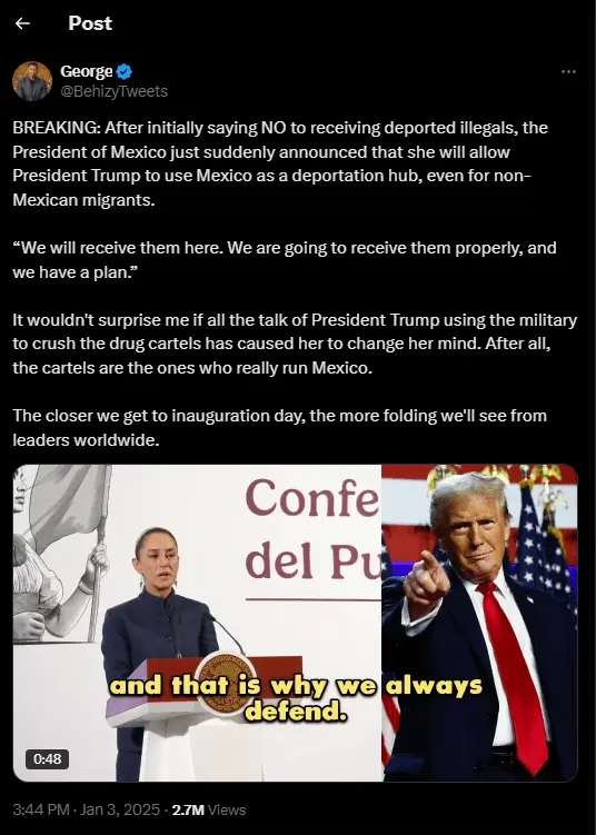 Mexico opens possibility of receiving non-Mexican deportees from Trump