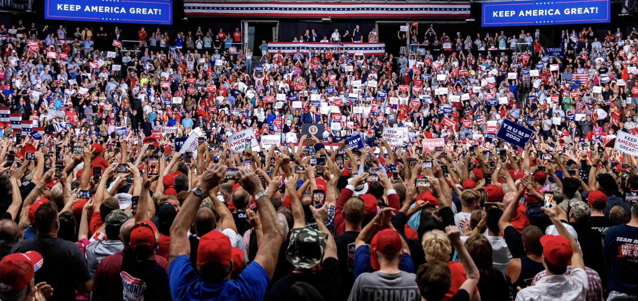 The SNHU Arena holds nearly 12,000 people, and was nearly filled to capacity when the U.S. Secret Service closed the doors. Thousands more people watched the president’s speech on giant television screens outside the arena.