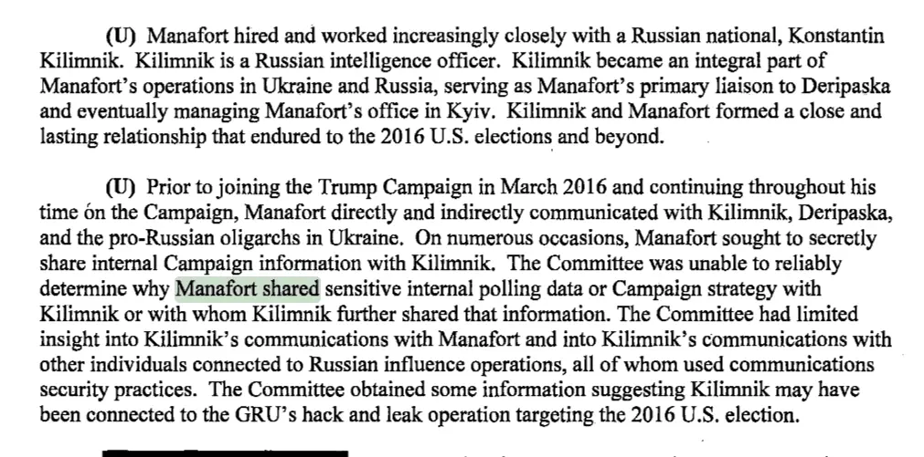 What part of the committee NOT being able to establish that Manafort shared any sensitive internal polling data confuses you most?