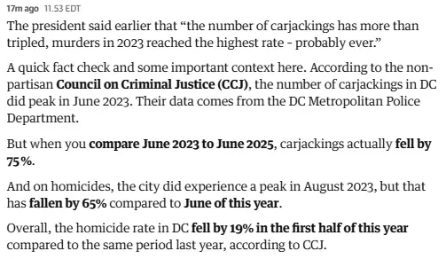 Mr. Trump has claimed that crime is “totally out of control” in Washington, even though officials announced in January that violent crime in the city was at a 30-year low.