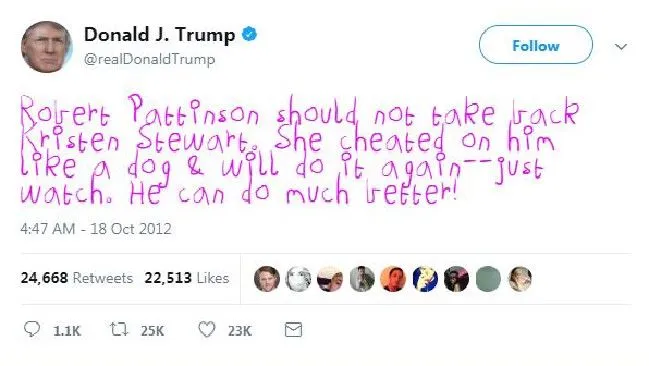 That’s fine. If he were tweeting things that were so childish then I would be in favor of him using it. But seriously- is this what you want your president tweeting?
