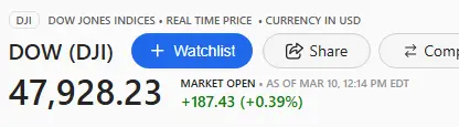 After losing almost ten percent of their value since Trump started his stupid war!Dow and other major indexes were up today.