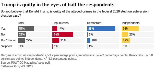 Only 20 percent of independents say he is not guilty
