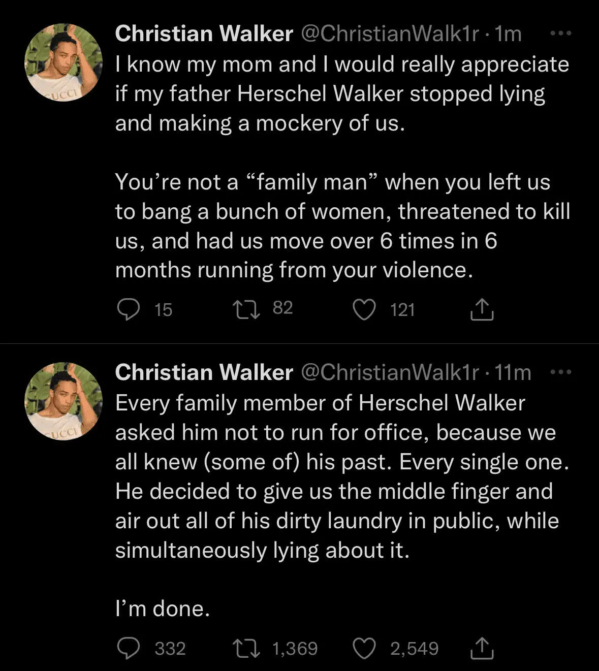 His son's accusations are pretty powerfulWalker isn't a good candidate, but a card and a check is not proof.