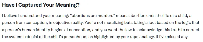 My response to that.Can people not discuss abortion without clutching emotion? Its not murder. Murder is the ILLEGAL taking of a human beings life.