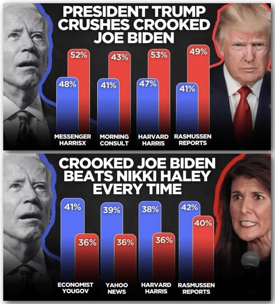 You don't appear to have any data that challenges my noting that most women, most Black Americans, most Hispanic Americans, most Asian Americans, most Native Americans, and most better-educated Americans prefer the President, but older, less-educated, white Christian nationalists are of a different opinion.