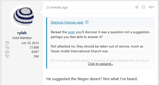 Oh I'm sure Jared Kushner is waiting on the sidelines for Trump to get back in power so he can pursue his dream of "cleaning up the strip" (expelling the population) to the middle of the Negev desert and building another Trump Hotel on shores of Gaza.Go on "invest" in the Gaza airport,