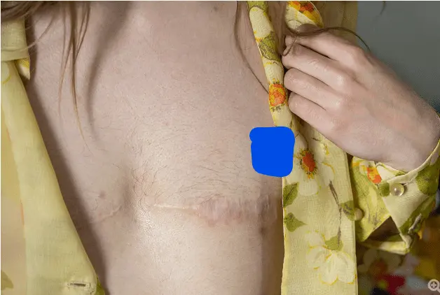 Her chest looks like exactly what it is: a teen girls chest that has had the breast tissue scooped out. The nipple is and looks like a female nipple. Reuters felt comfortable showing it to you, but I don't since she is a sixteen year old girl. Ironic that they gave her hormones to literally "put hair on your chest." When she becomes an adult, she will find that the alt sexuality types that will want her will expect her to shave it off.