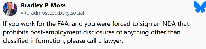 - NDAs are illegal for Federal workers except for Classified - I'll concede 'sensitive' also, which Musk also didn't seek. Why not?