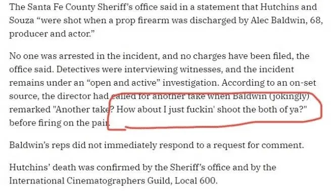 This incident was different. Baldwin aimed a gun at a person without knowing what was in the chamber. He's a murderer.