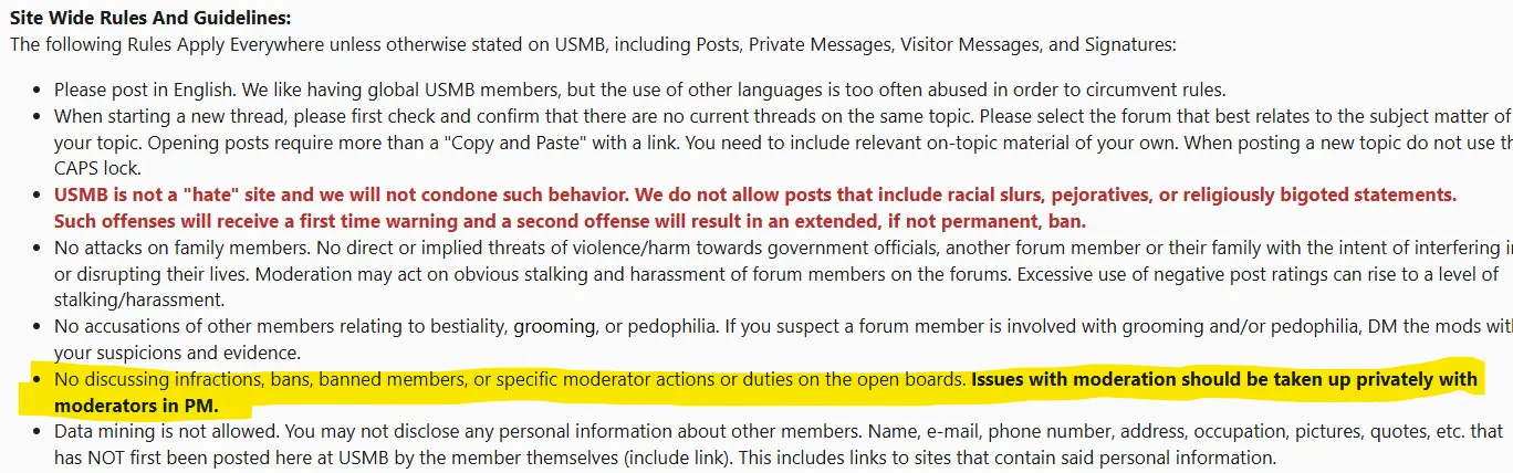 Comment: the rule prohibiting public forum commentary from members regarding moderation should be relaxed at least to the extent of permitting it in the proposed new forum. (The rule itself shouldnāt even exist, but this suggestion doesnāt delve into that.)