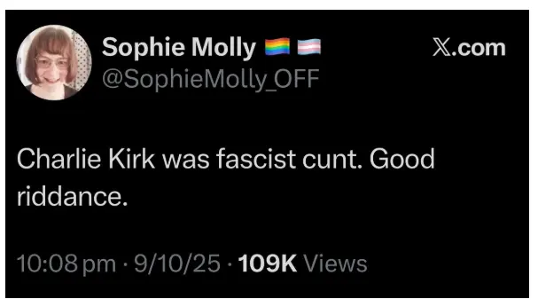 Please use this thread to link to share screenshots of any comments, posts, videos, memes, etc. that you find are celebrating the Murder of Charlie Kirk, blaming him for his own murder, etc.