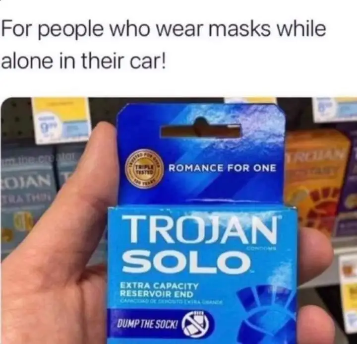 These types dont like anyone doing anything different from what they do. They fear that.You have no idea why someone might wear a mask in a car.