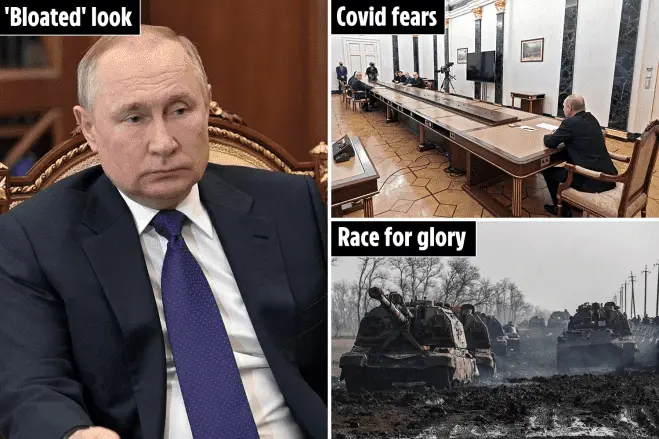 69-year-old Putin’s ‘increasingly erratic behaviour’, combined with a bloated appearance in recent footage – and the absurd distance he insists on keeping from visitors to the Kremlin.