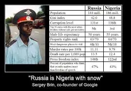 "Google's co-founder Sergey Brin said that "Russia" was nothing but “Nigeria with snow”, run by a “bunch of criminal cowboys”."