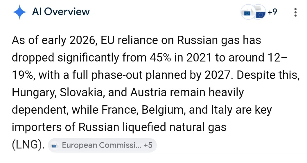 It's pretty pathetic the EU is still buying energy from the Russians while they cry about the war with Ukraine. Can’t really be against Russia while supporting them at the same time.