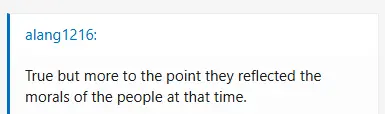 True but more to the point they reflected the morals of the people at that time.And blacks (slaves) were non-persons, women were lesser persons and had no right to vote or own property. . . on and on.