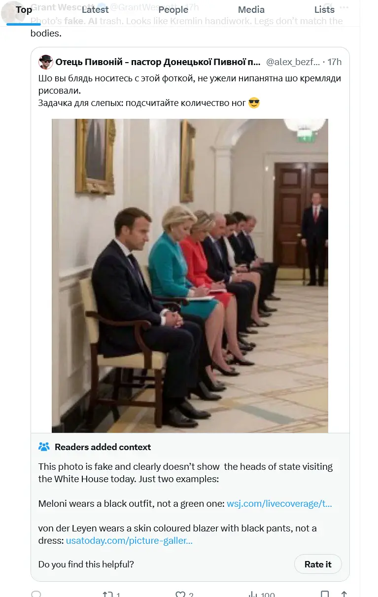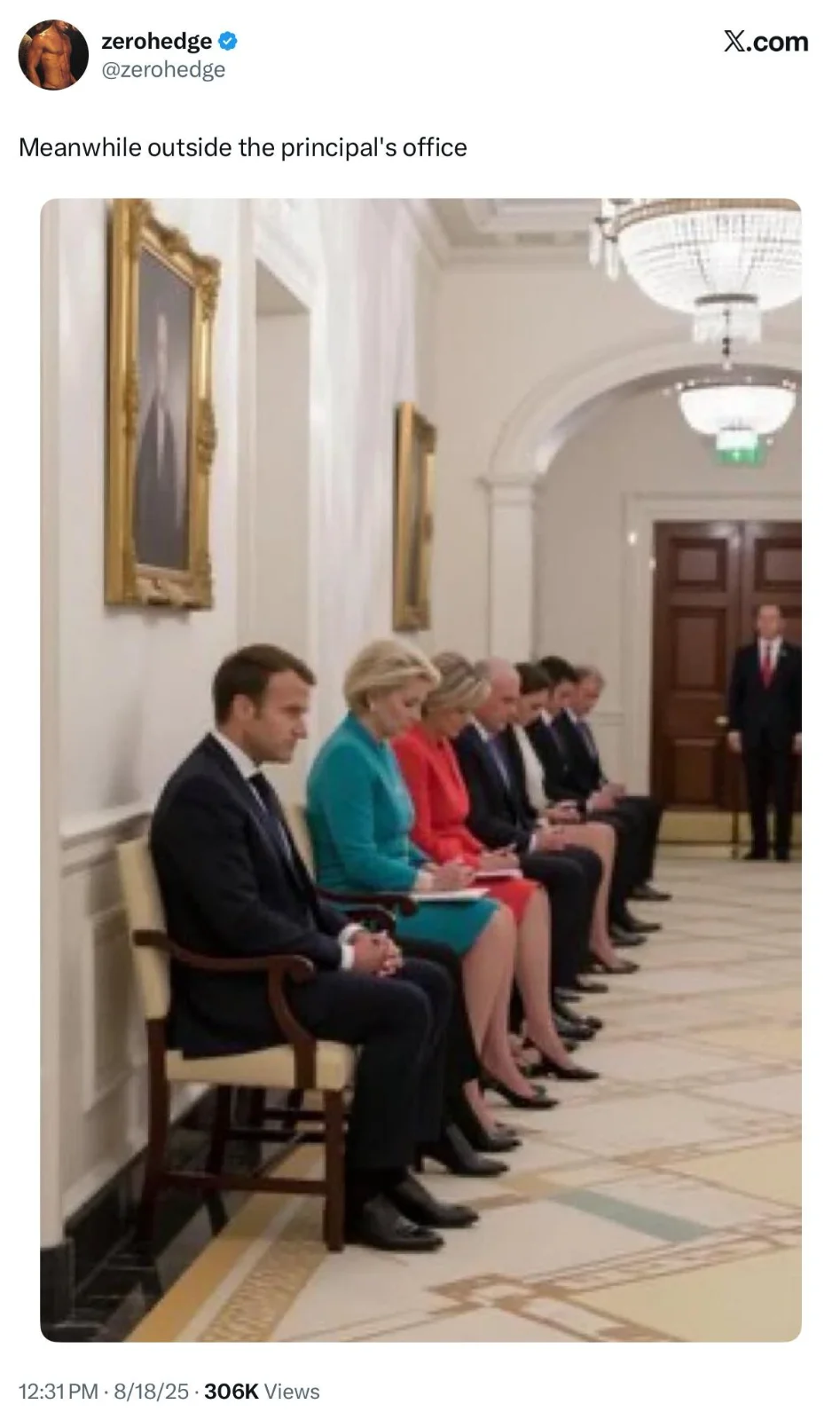 Does it matter that Marcon has three legs? Does it change that they had to wait for Trump and Zelensky finish their conversation?Photo’sfake (much like you). AI