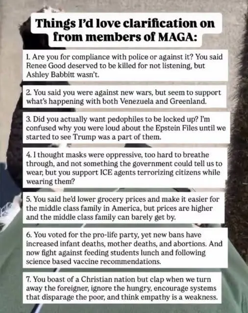 1. My issue with the shooting of Babbit was that she was unarmed and shot dead, yet no official investigation was to be had immediately after the event. Then the media all sang the praises of the officer who shot her, and refused to reveal the name of the officer, to protect the officer and his family. Compare that to the shooting of Good. The media instantly declared ICE Nazis, and were the judge and jury that the officer was guilty and did not shoot the woman dead to protect himself from getting run over as the death threats came against the officer and his family.
