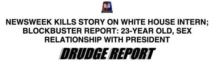 We forget how the Lewinsky story actually came about. The media colluded to keep the story quiet and Drudge found out. He didn’t so much intend to break the Lewinsky story...his headline was that the media was spiking the story to protect Clinton. They still do it today.