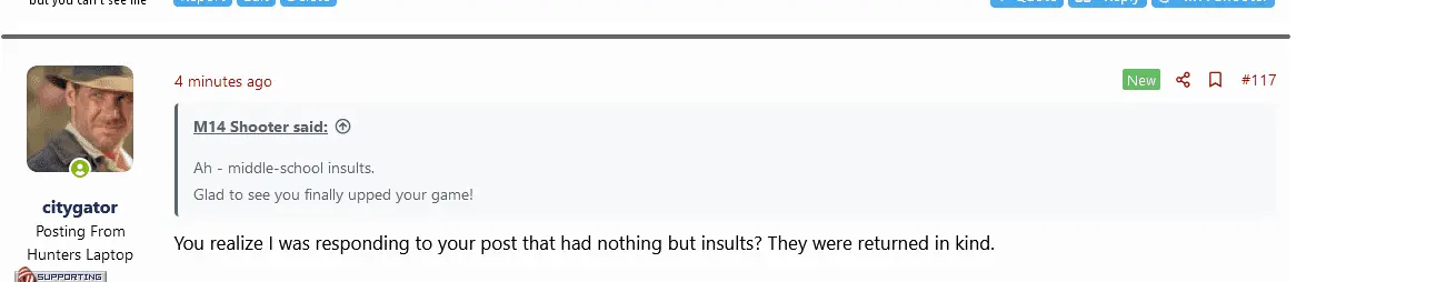 You realize I was responding to your post that had nothing but insults? They were returned in kind.Ah - middle-school insults.