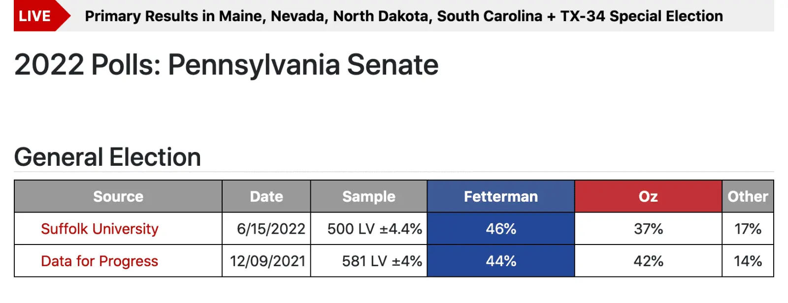 Fetterman Leads Oz 46%-37% In First PA Senate Poll