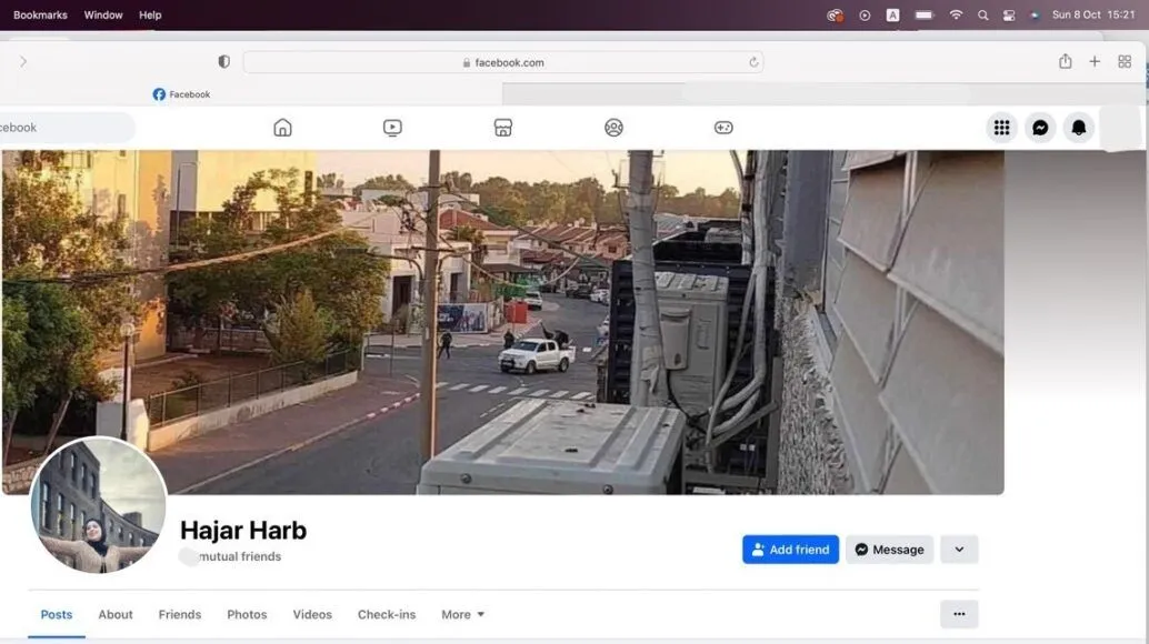 Here is her Facebook cover photo from October 8th featuring Hamas terrorists inside an Israeli city: